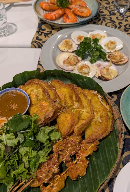 By evening, we’d recharged just enough to eat again (tough job, but someone’s gotta do it). Dinner was another feast — this time with a Thai twist. Think fragrant beef curry, laughter, and stories about who actually tried the snails at lunch.