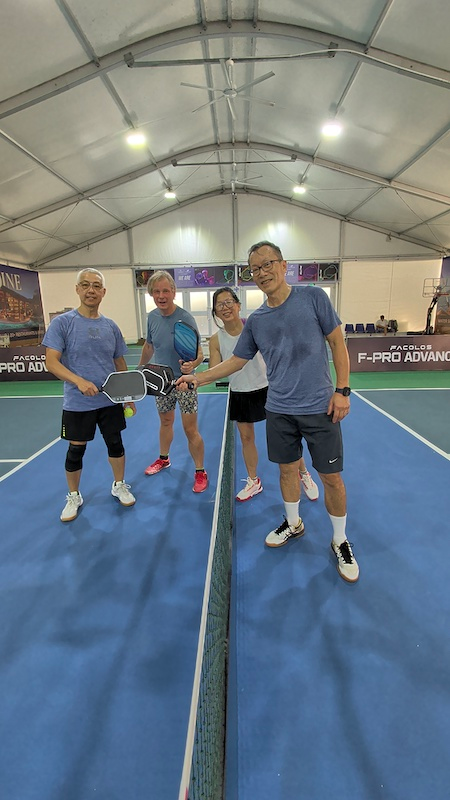 Early morning pickleball — again! But this time, something miraculous happened: the sun actually showed up. Our very first glimpse of sunshine in Vietnam! You’d think we’d just discovered gold.
